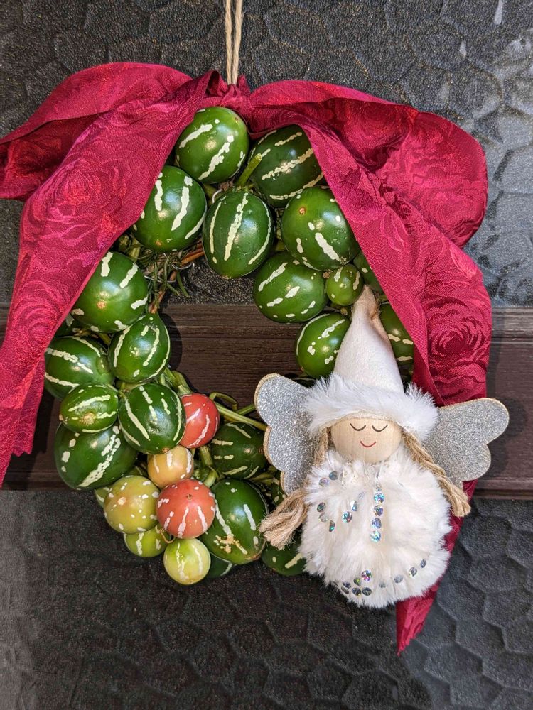 ②オキナワスズメウリのリース❣️リース台に送って頂いたローズマリーとオキナワスズメウリを巻き巻きしてなんとか出来ました✨(*^^*)