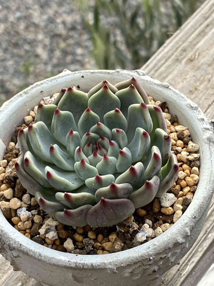 おかしい💦…植え付ける時には根っこボーボーだったのに。水遣りしてもずっとしわしわ😢鉢を動かしたらグラついてコロコロ……💦根っこが皆上↑向かって生えてた土かんでない😅青みのお肌に赤い爪が可愛いのですが( *´艸`)💕