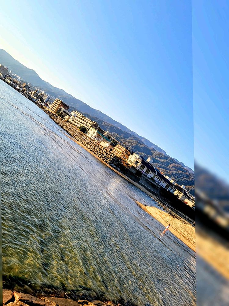 暖かいので波打ち際で