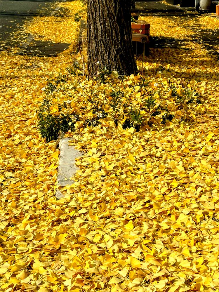 銀杏の葉の絨毯💛💛💛💛💛💛、セブンの方が掃くのですか?大変な労力ですよね。この日は木枯らしが強かったのでしょうね🌬️😵