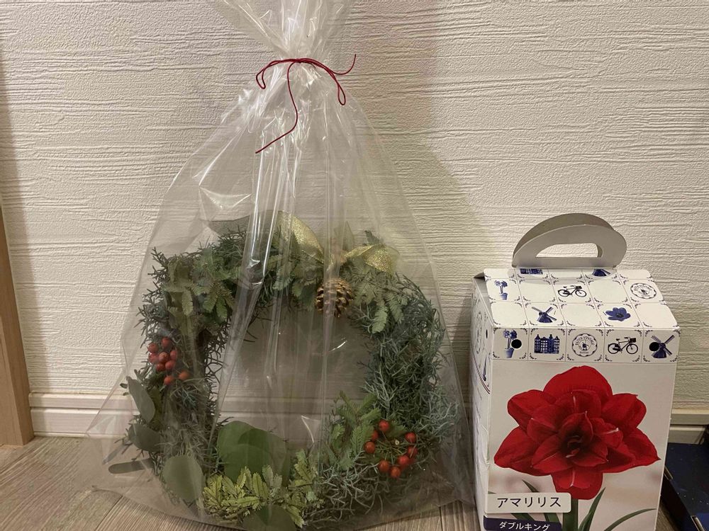 美容師の友達が手作りリースとアマリリス持ってきてくれました🥰