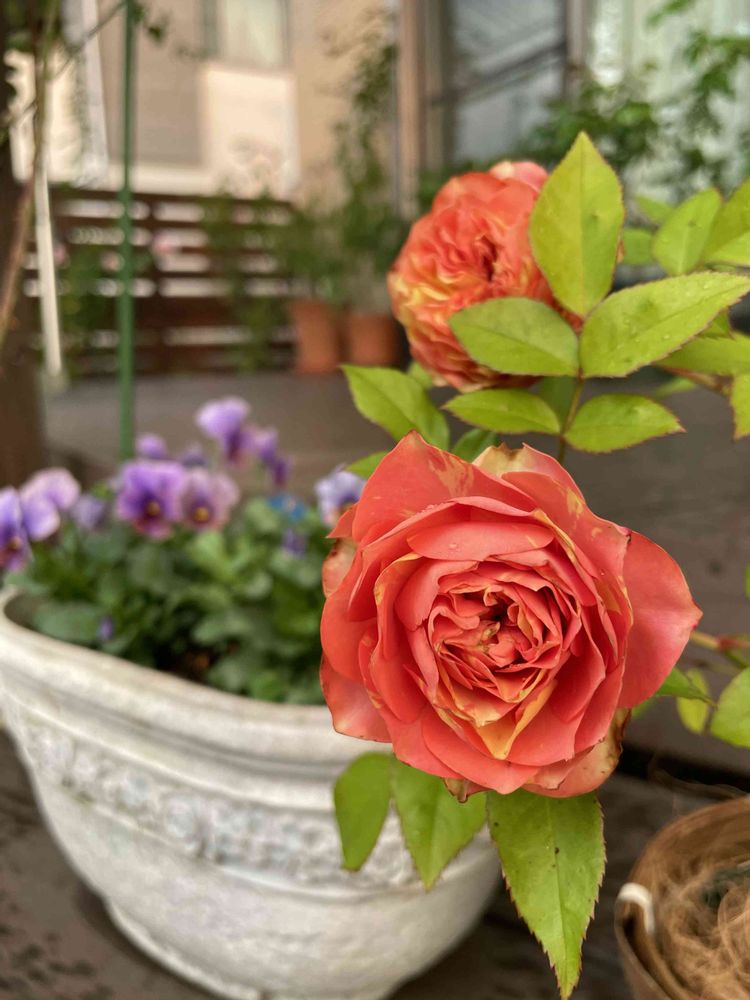 ミニバラは、春にはもう少し淡い色でしたが、濃いめに咲きました🧡