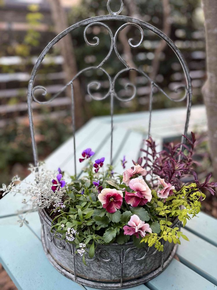 ビオラパンジー寄せ植え、やめられませぬ。