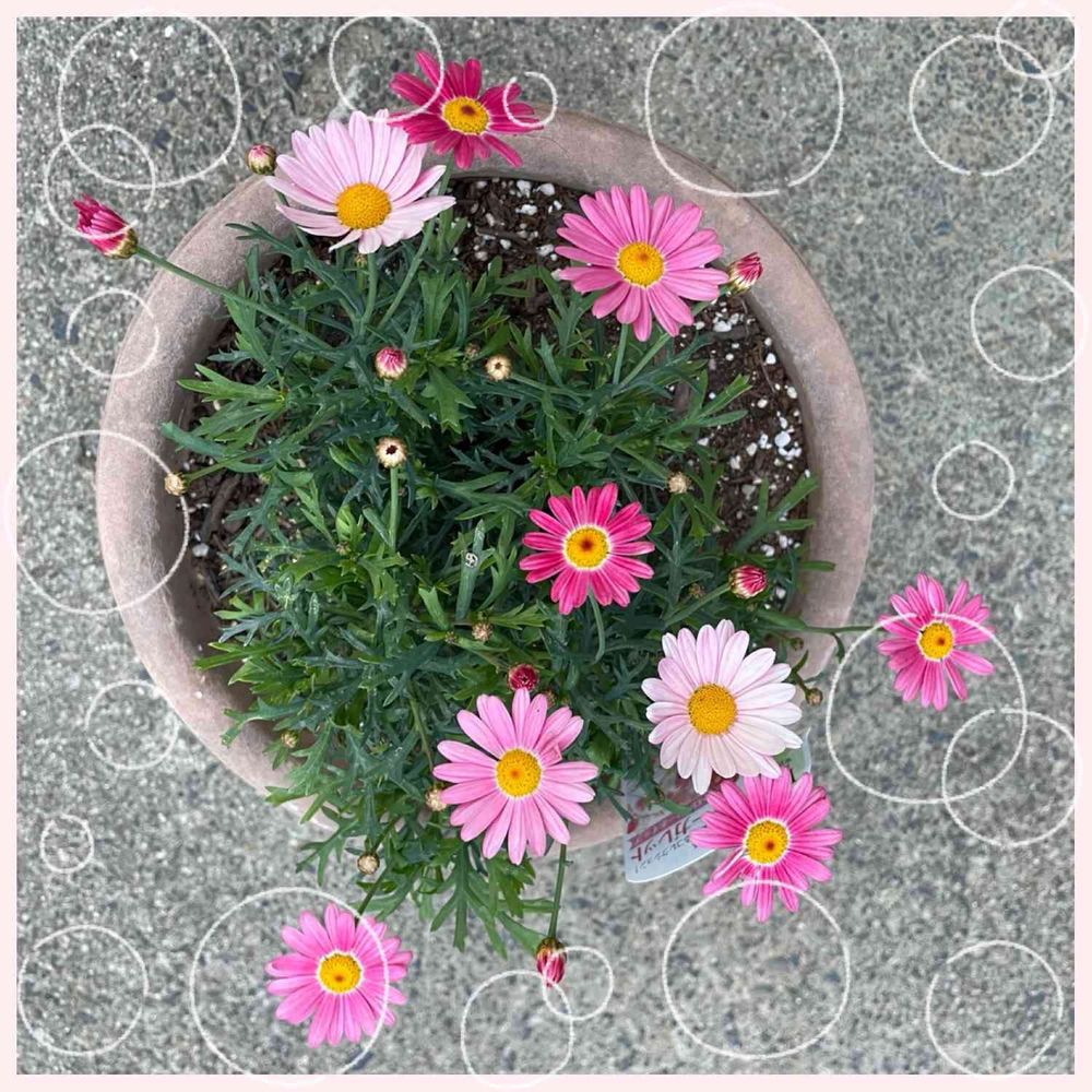 マーガレットは霜に気をつければ春先まで長く咲いてくれますよ♬びっしりお花が咲くと嬉しいですが〜鉢が小さいかしら💦