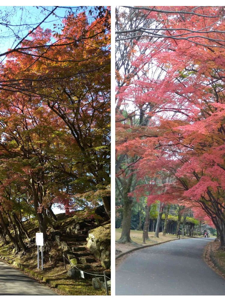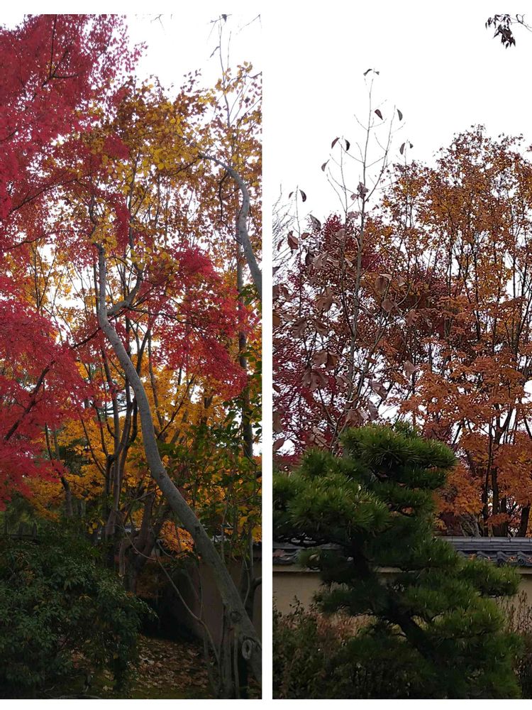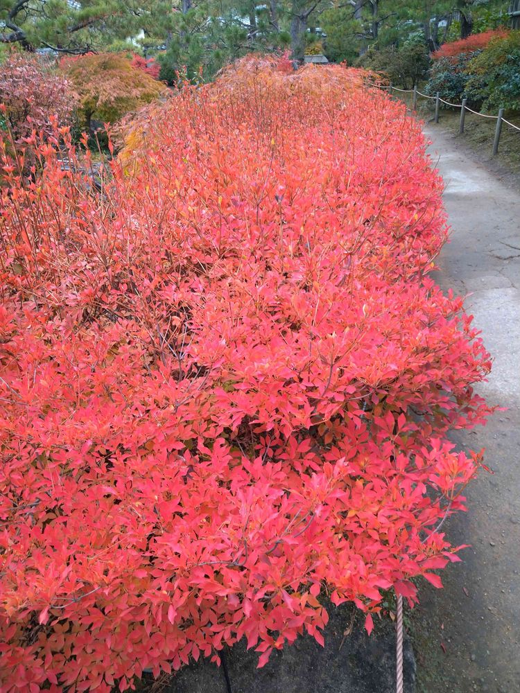 好古園の紅葉をドウダンツツジですそして好古園内と外側を2枚と、以前紅葉の紅葉前と綺麗に紅 葉した同じ場所で🍁🍁🍁🍁🍁