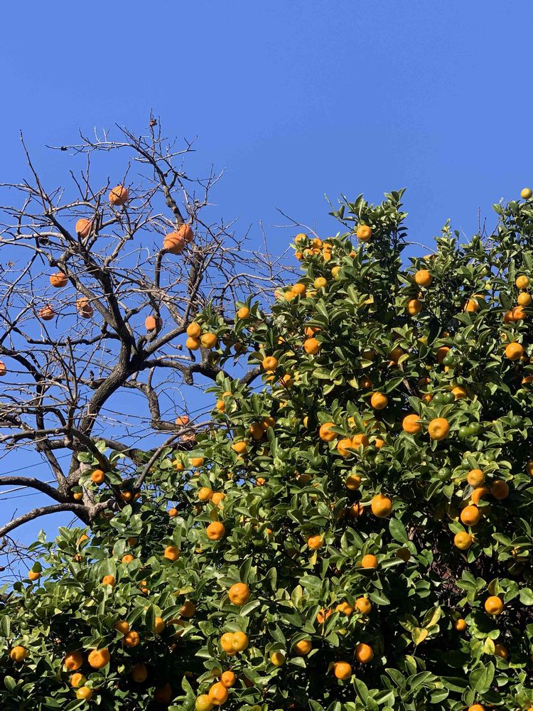 青々とした緑の葉っぱの間に鈴なりのキンカン。