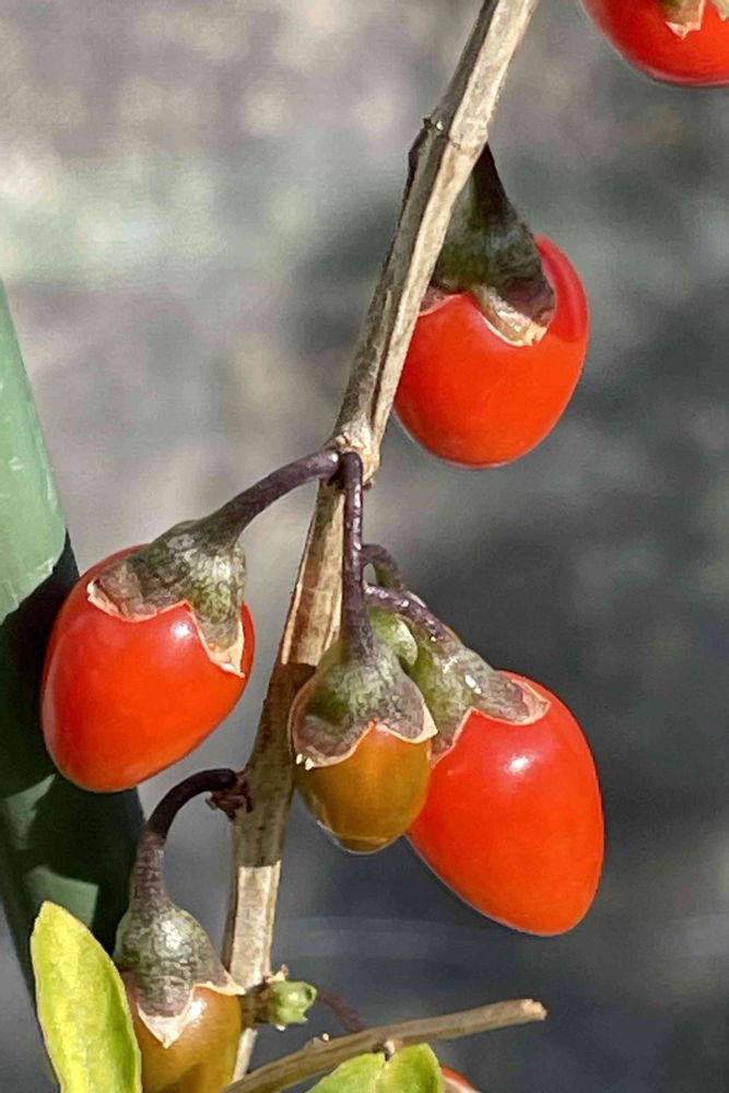 クコの実成ってれのはじめて見ました。こんな形、結構大きな実なんですね😍✨