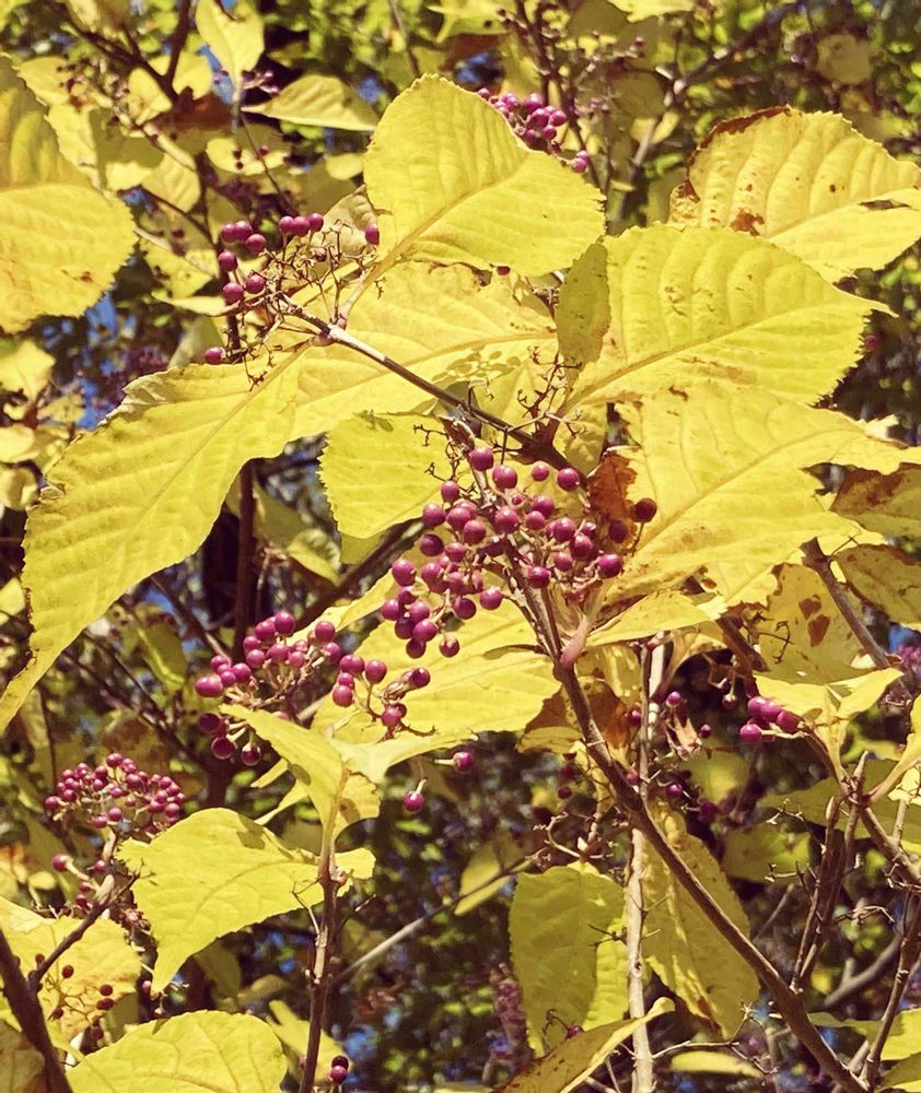 私も今日ムラサキシキブだけやたら目にしました〰️黄色とのコントラスト良いですね❣