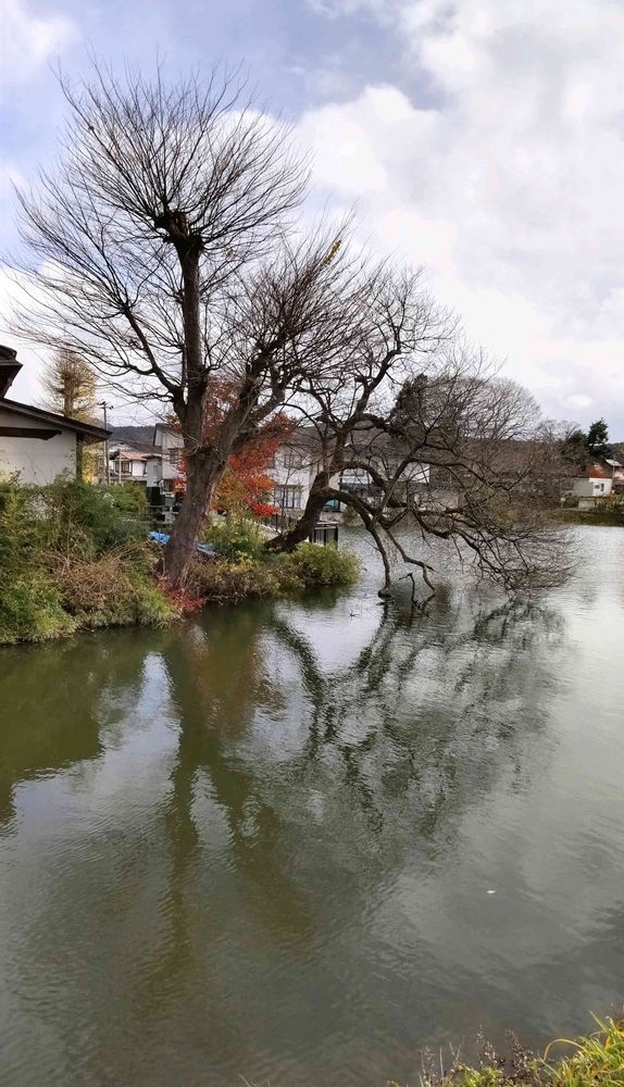 ①小学校の裏に在る溜め池、始めて行ったら素敵な冬の風景が…池の中まで潜り込んだ枝と湖面に写った木😘