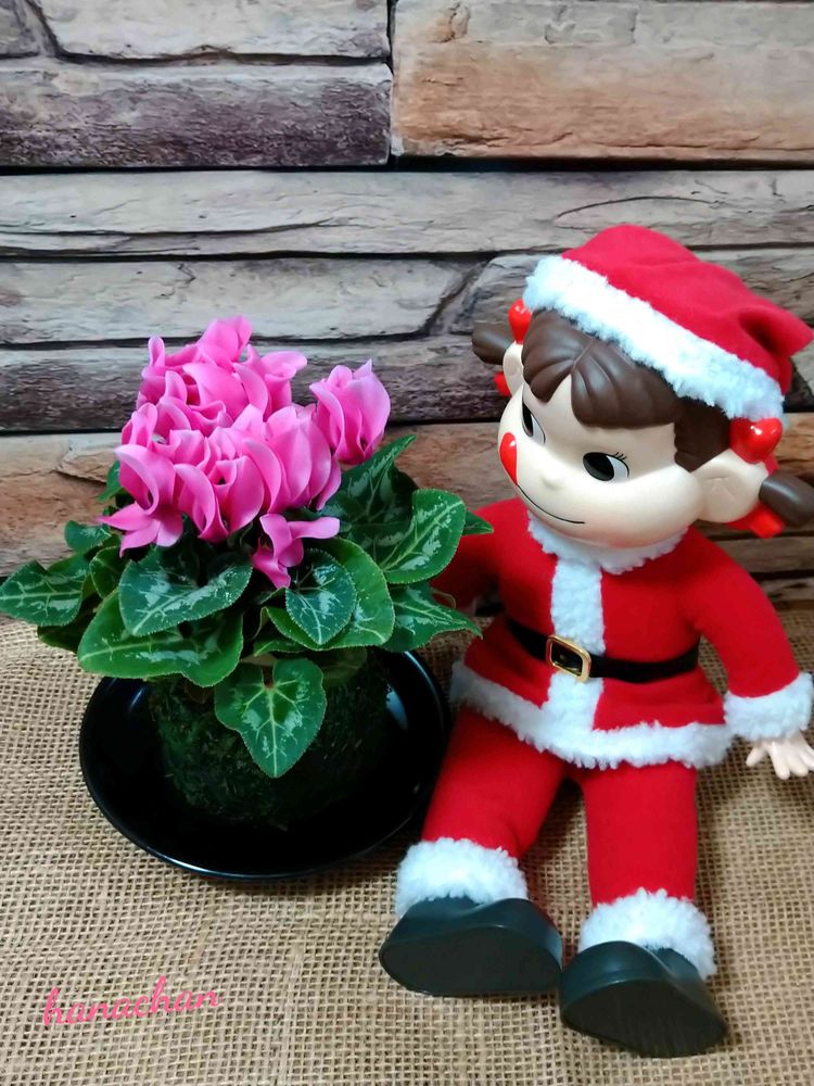 ④は、めちゃくちゃ可愛い~おすわりペコちゃんサンタと、苔玉シクラメン 🌸