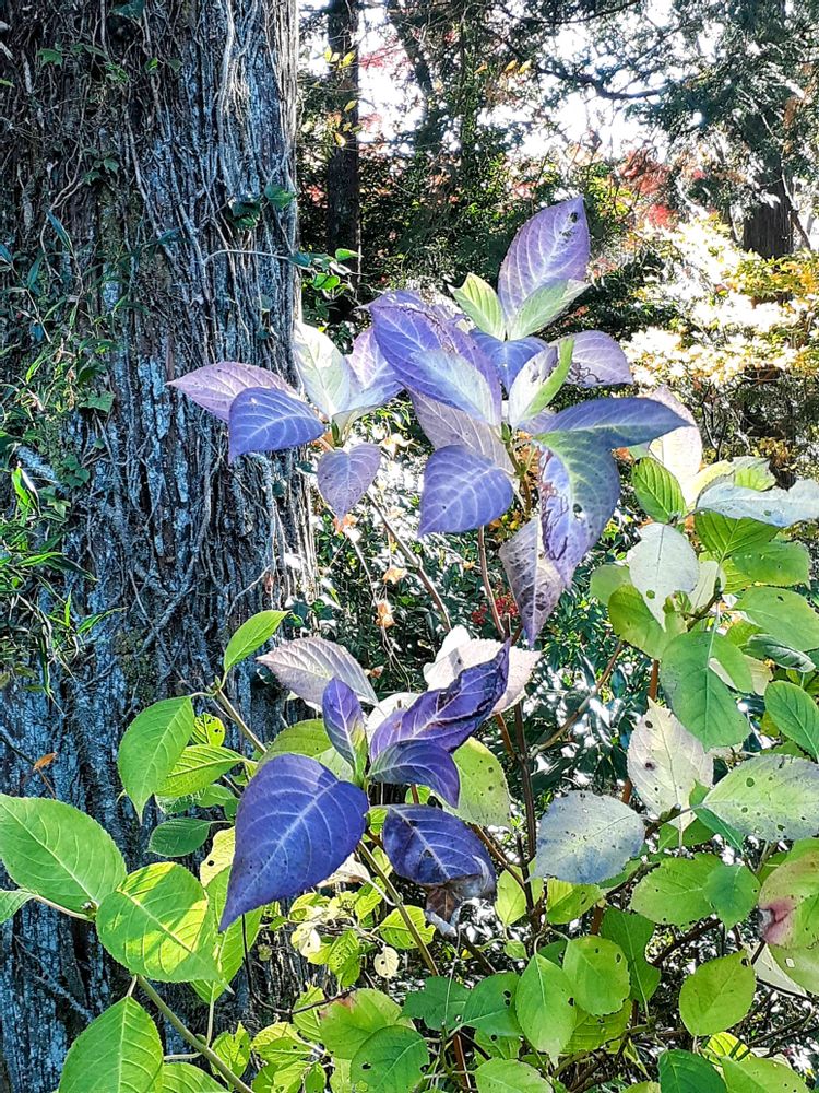 紫陽花の葉、珍しい色合いの紅葉ですね‼️