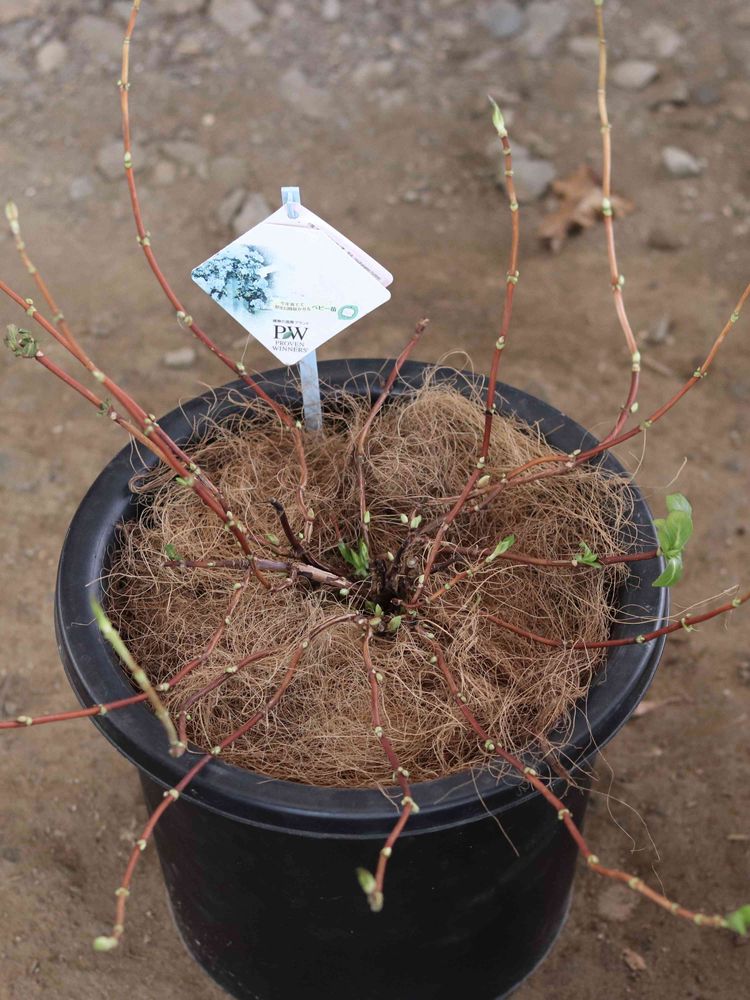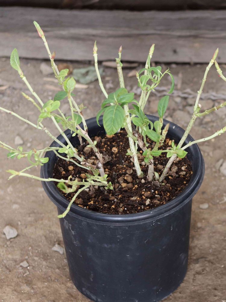 5枚目 4枚目の紫陽花の今の姿(植え替えして葉っぱを全て落とした状態)