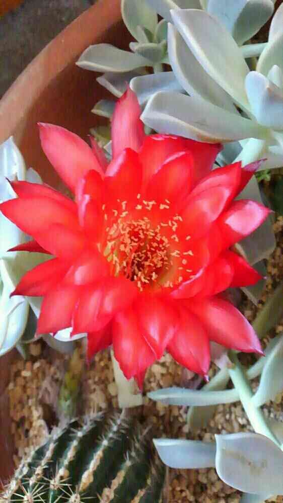 今日は大鉢の真っ赤なロビオプシスが咲きました。周りの多肉は朧月です。葉挿しと言う名の放置をしていたら、あっという間に増えてしまいましてね(・ω<)
