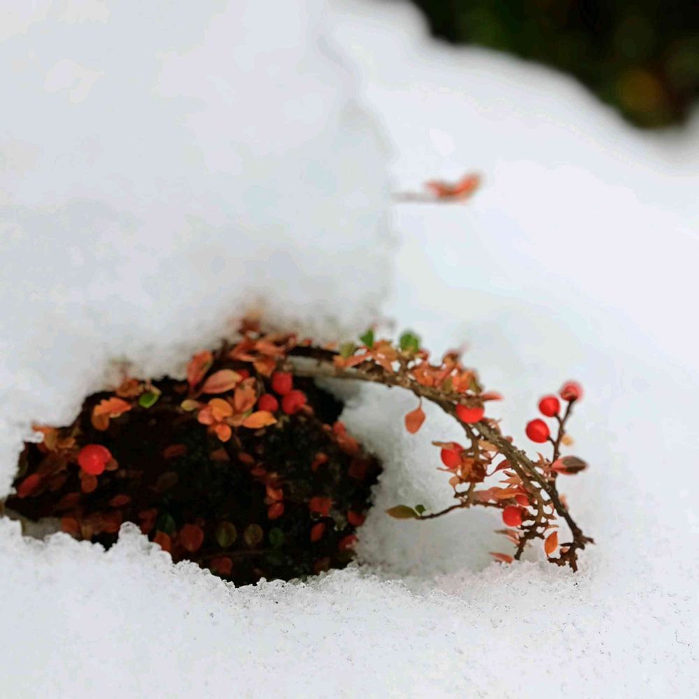雪を纏った庭木、赤い実も…雪という雪が降らない地域に住む私はすっかり魅了されるのですが💘そちらは大雪なのでしょうか🤔