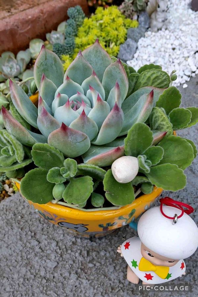 1枚目は、先日お迎えしたえつこさんのハシビロコウリメ鉢に、寄せ植えしました。