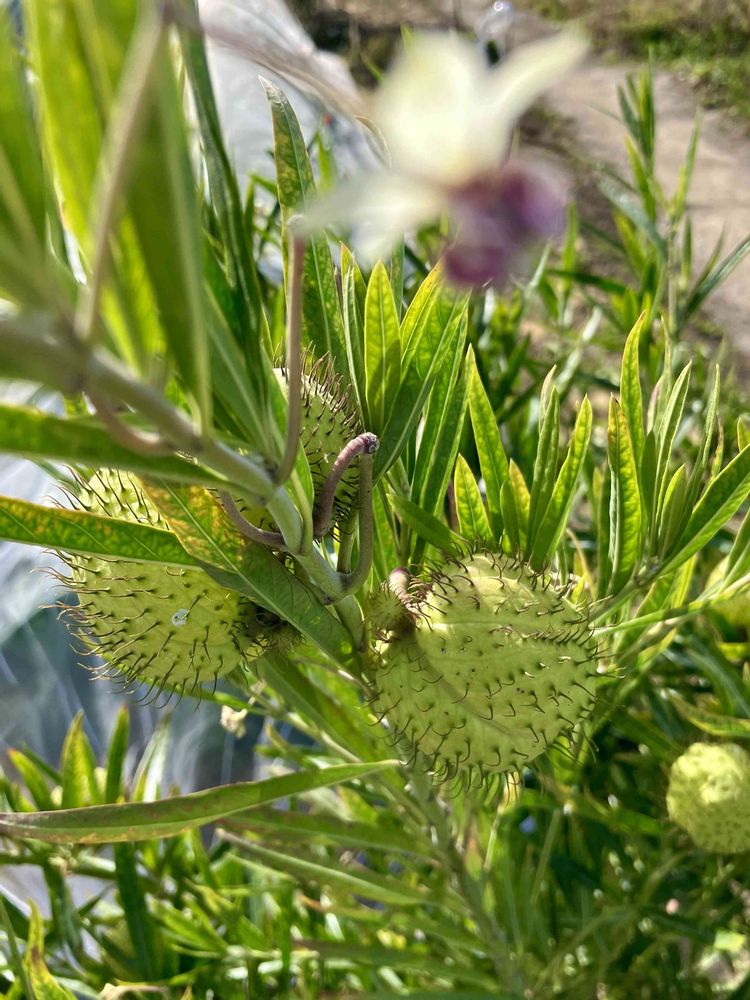 むか~し、茶色くなってパッカリ開いた実を貰ったことがありましたが、花も少し変な形してるんですね~🌺