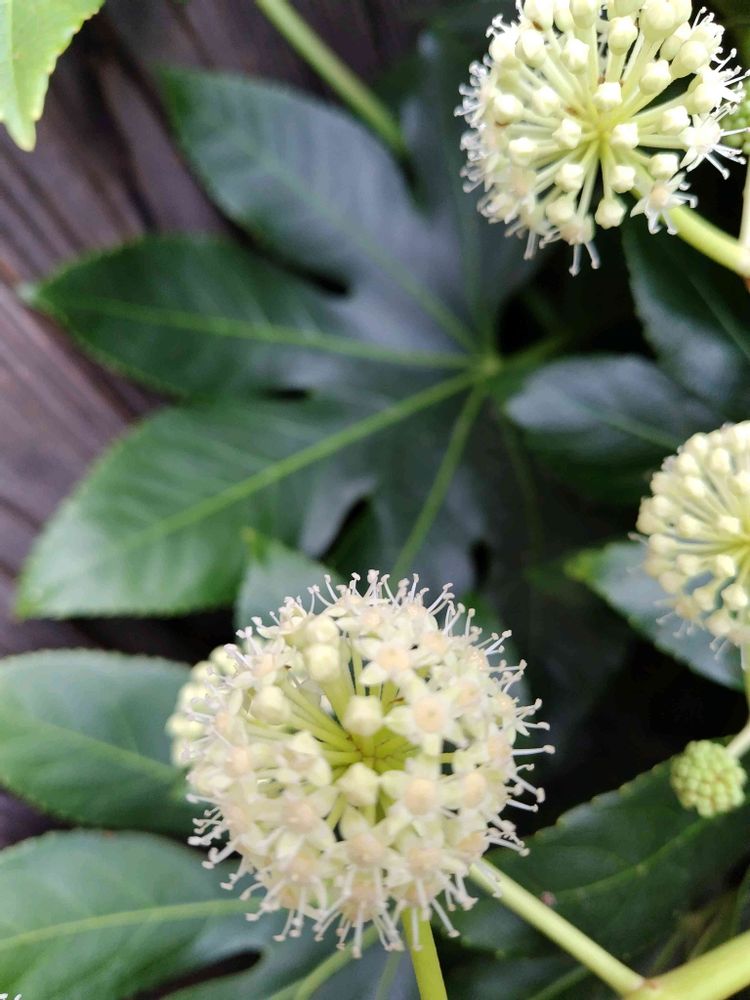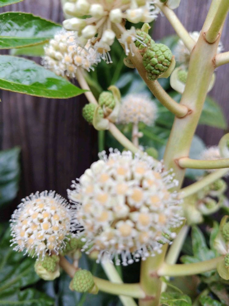 ヤツデのお花が咲くと、わー、冬が来たなあと思いますね🥰寒い時期に貴重な蜜を求めてハナアブなどがやってくるのも健気で愛おしい冬の風物詩ですね💖😍