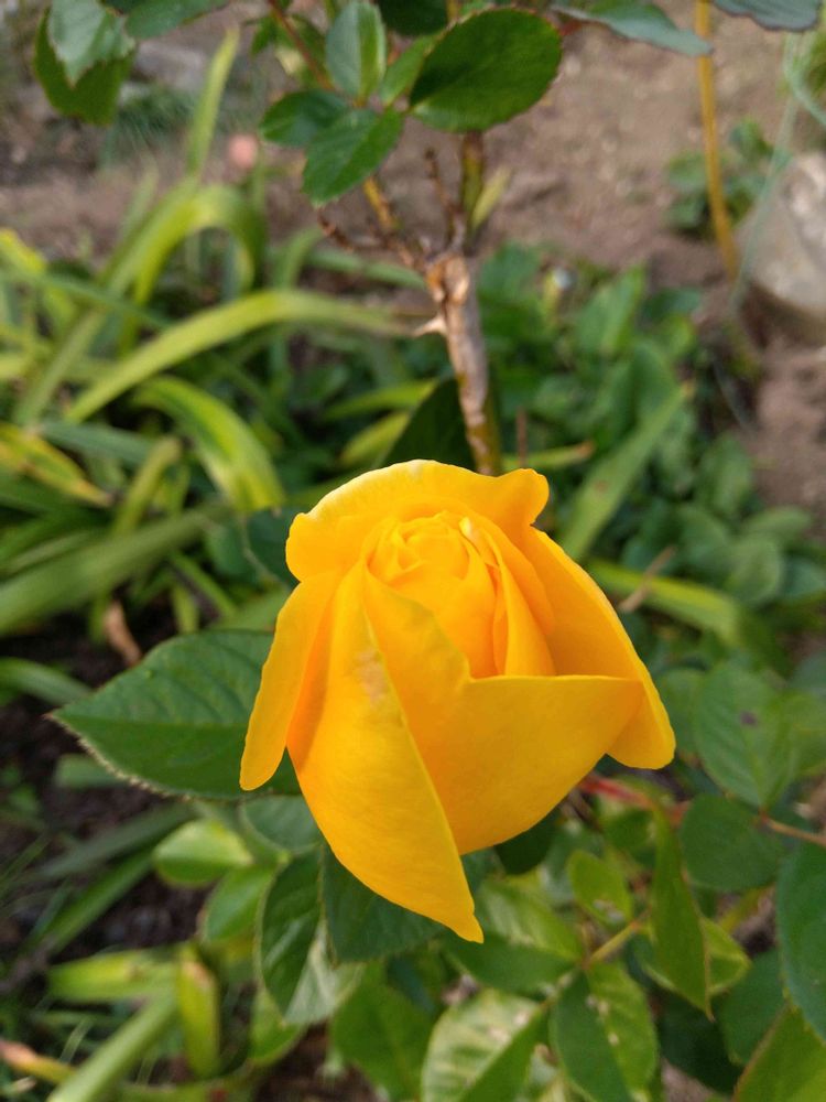 イソギクにクラリンドウ、そして黄色の薔薇の蕾