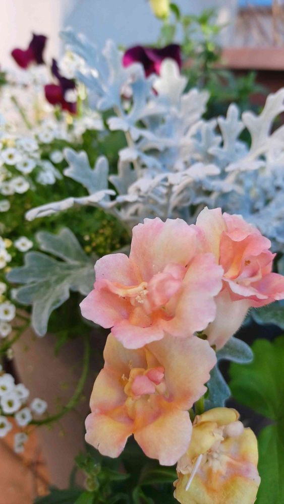 八重咲きのキンギョソウとシロタエちゃんのモフモフがメルヘン💕