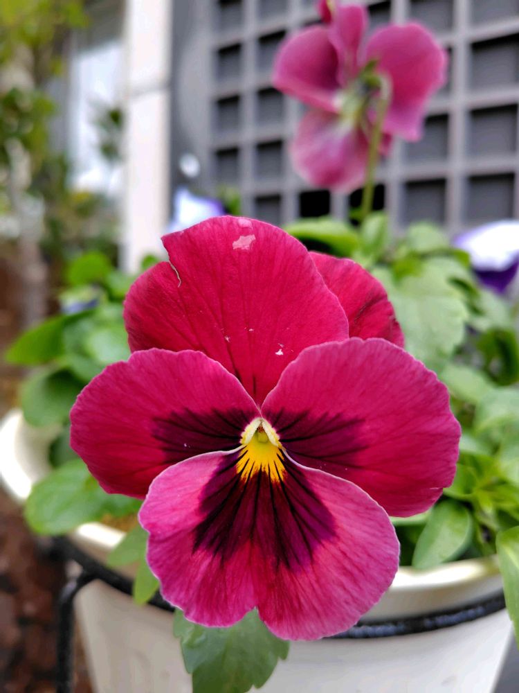 ワインレッドのパンジーが咲いています🍷