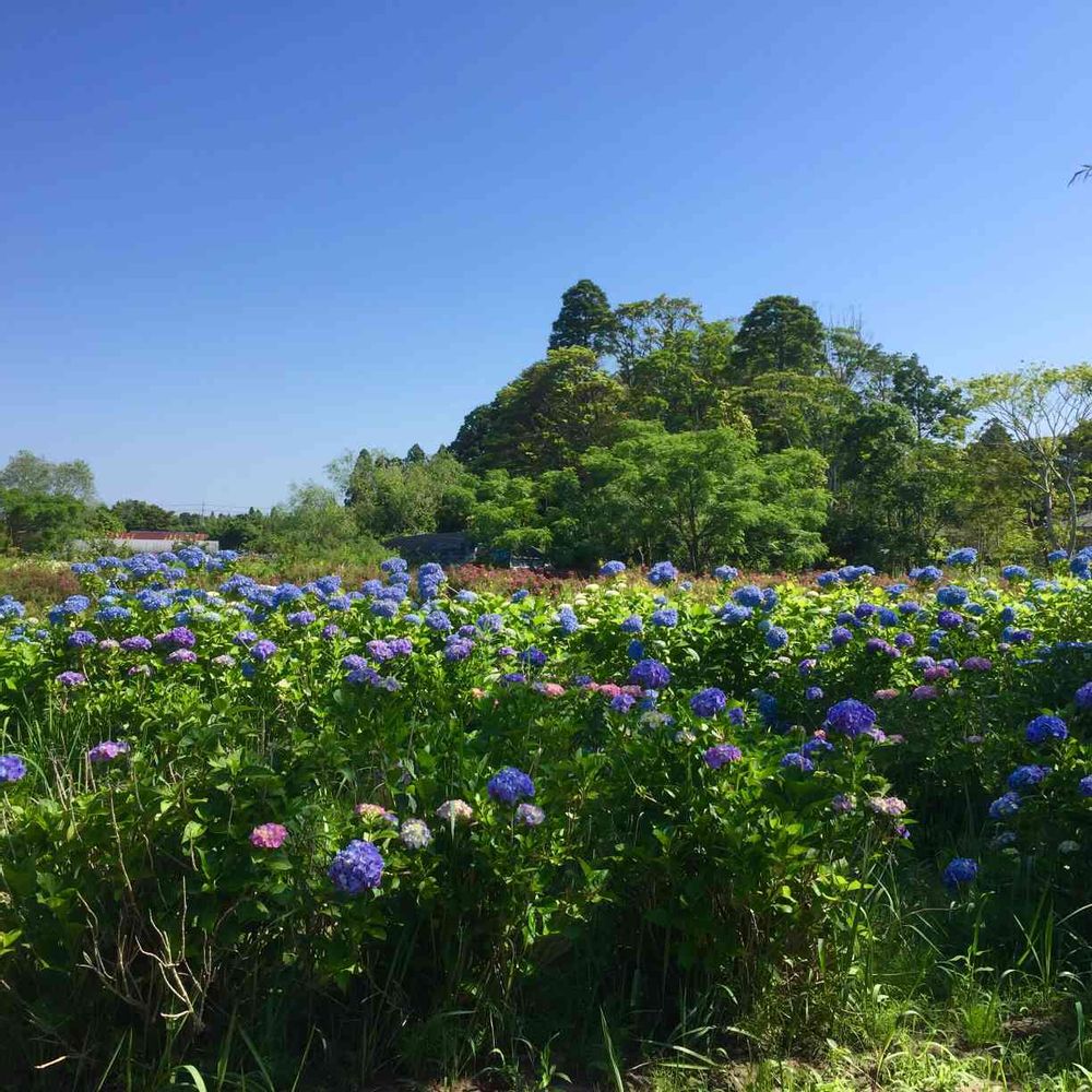 ご近所さんの畑、紫陽花が咲いてました。