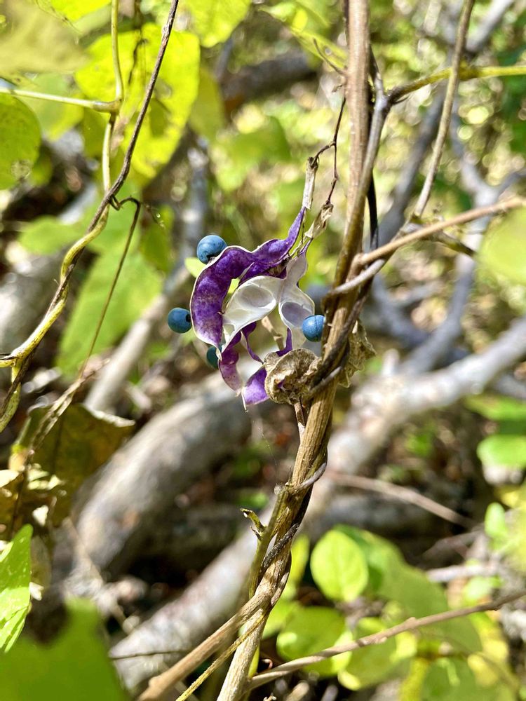 今まで見かけていたのは、葉っぱばかりでしたよ🌿やっとこ、綺麗な紫の鞘とブルーの実に出逢えました🫐