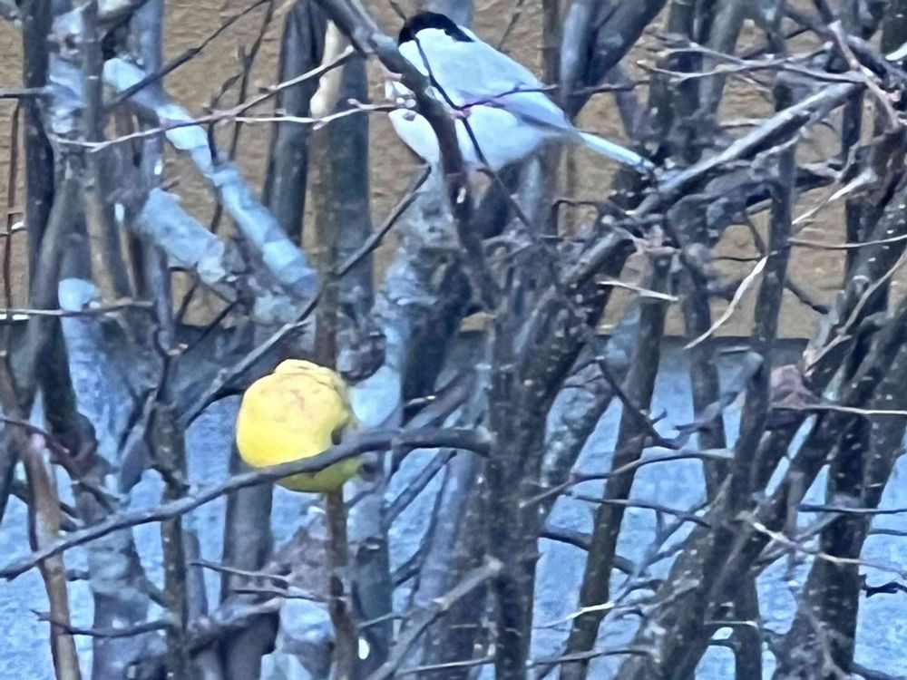 実家の木瓜の木🌳に 来たシジュウカラちゃん🐦