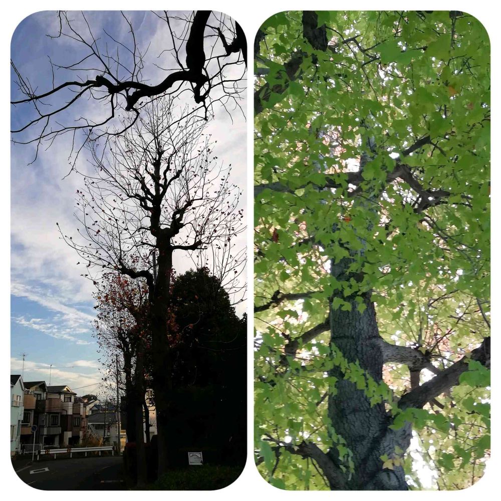 木曜日なのでプラタナスとモミジバフウの木です🤗プラタナスは葉も落ちてしまいました。