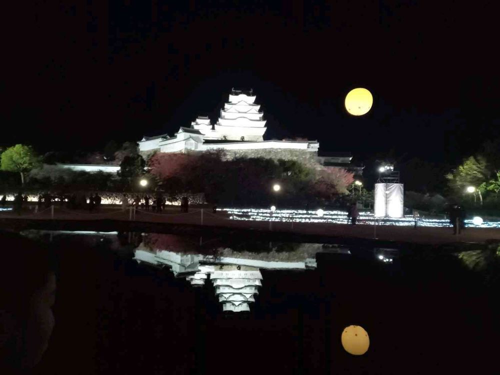 こんばんは🌉姫路城で、鏡花水月🌕🏯しています。友から 2枚目はイルミネーションです。今日もお疲れ様でした🍀