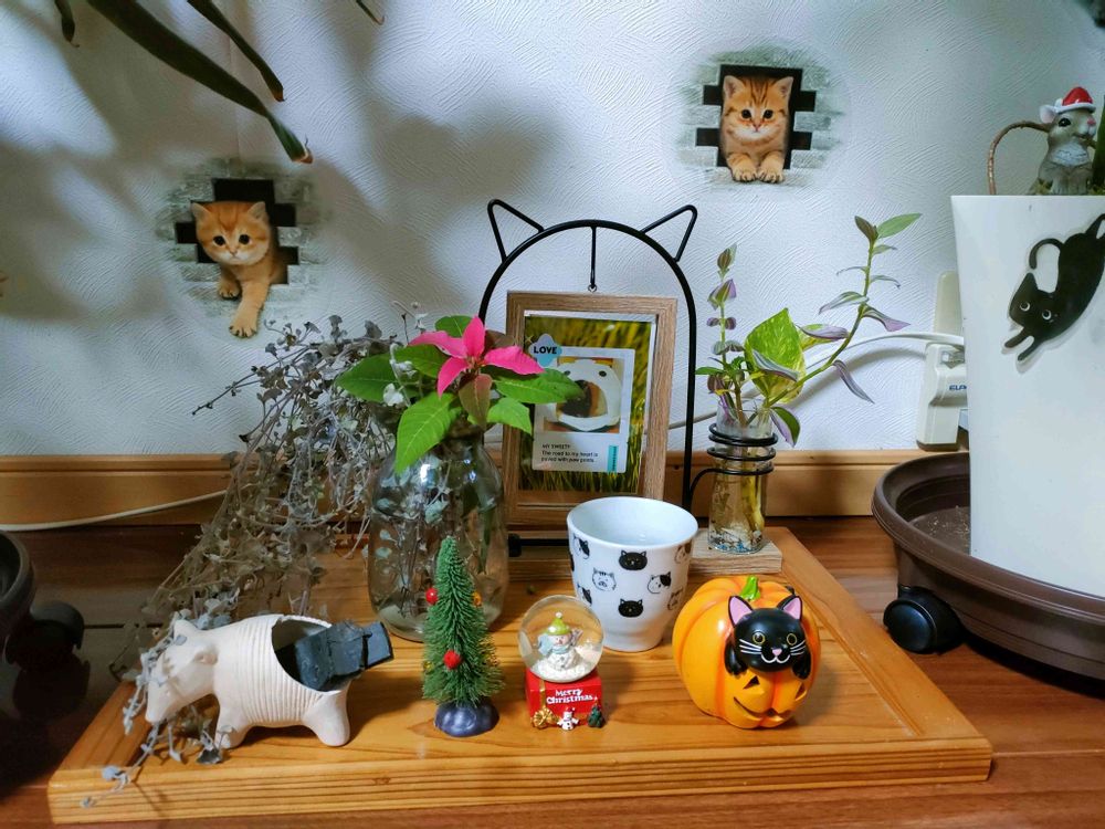 どれも可愛いのですが、左上の壁から抜け出す猫ちゃんの貼紙(?)が、とても可愛いですね🎵