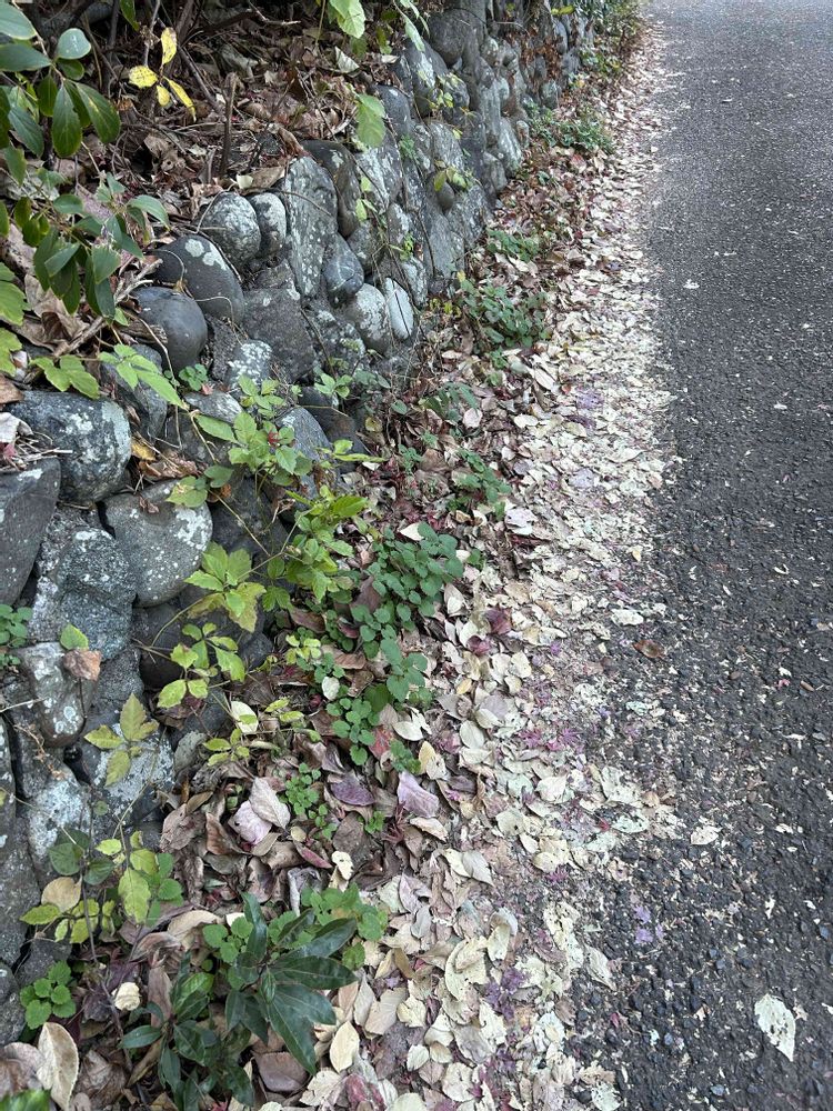 家のすぐそばの細い道なんですが、石垣の向こうの家には誰も住んでいなくて、
