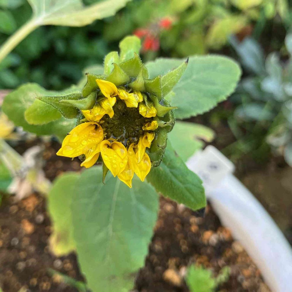 今の時期にミニヒマワリ🌻の溢れ種から咲くなんて凄いですね╰(*´︶`*)╯♡💓