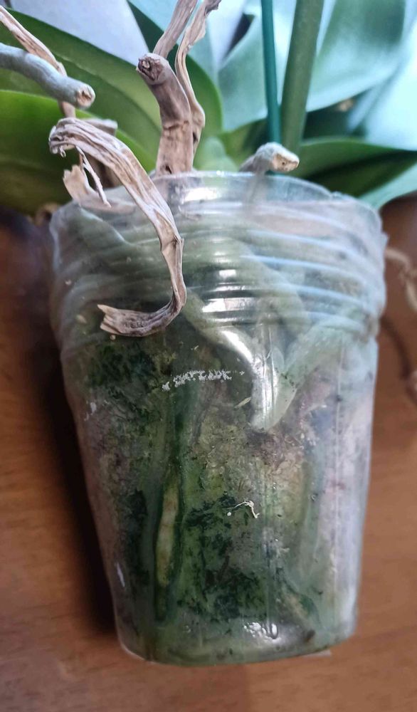 初めは持ち上げて水に入れていたんだけど、そのうちに、上から水をあげるようになって、根が下に伸びてしまいました。