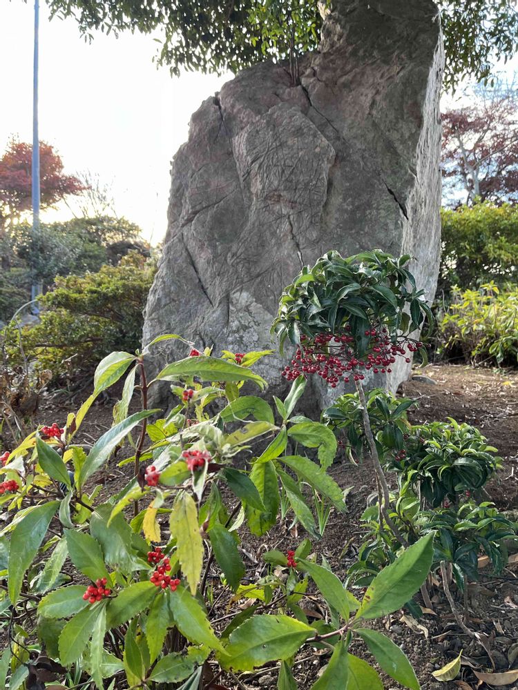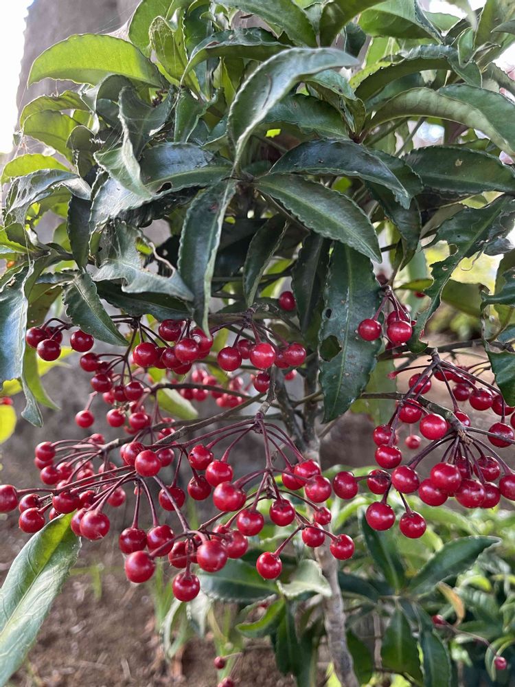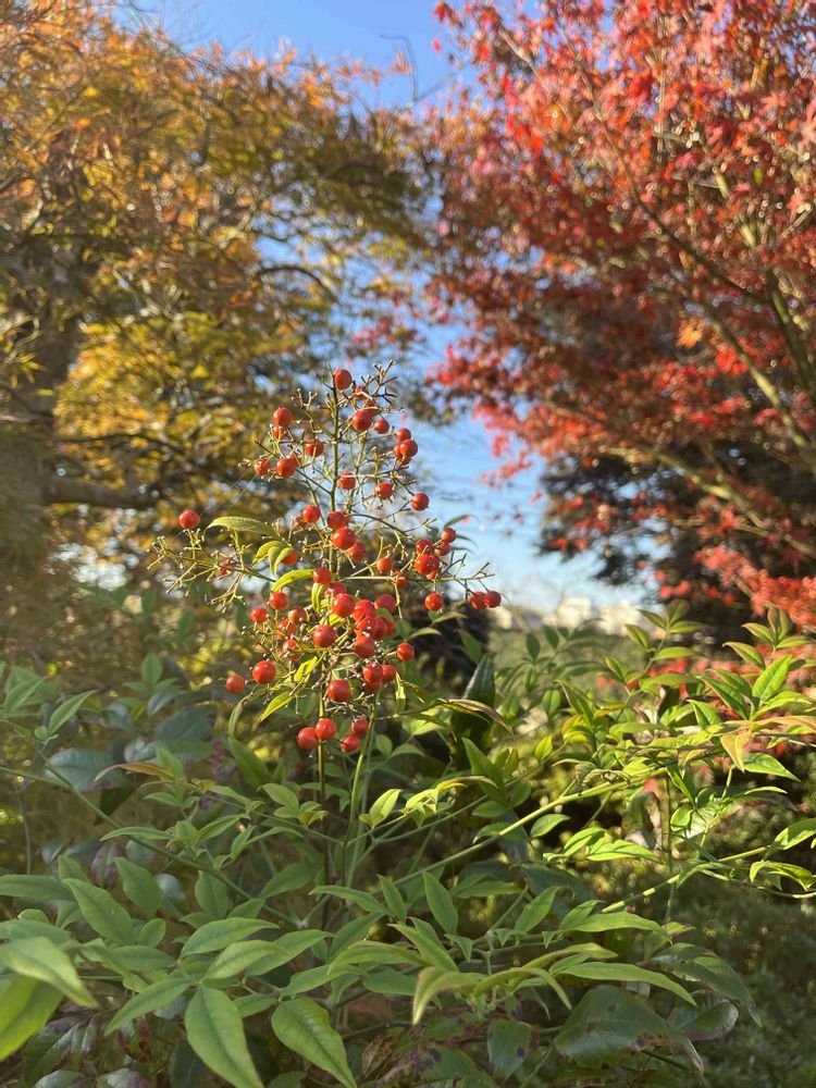 モミジの木の間の、ナンテンも真っ赤になっています🔴