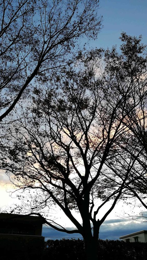 今朝のグランドの朝焼け木の枝から見えて綺麗でした💕