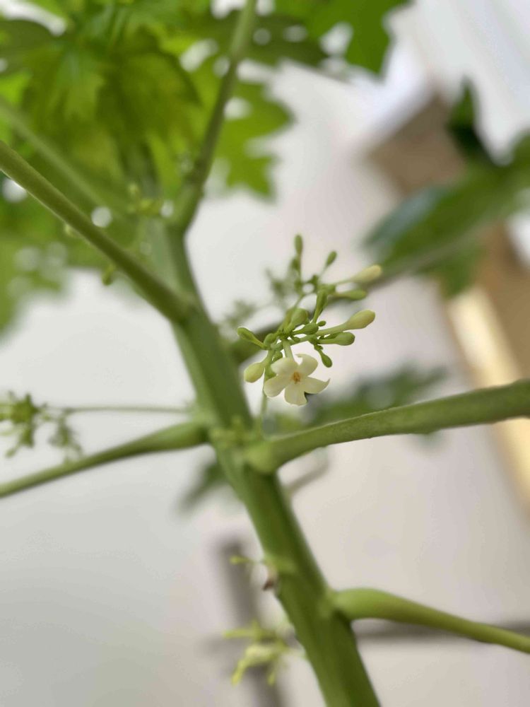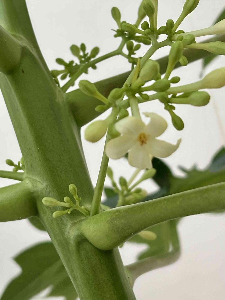 パパイヤって、こんなにいっぱい花が咲くなんて意外でした。マンゴーも🥭いっぱい咲くけど、そんな感じですかね😆