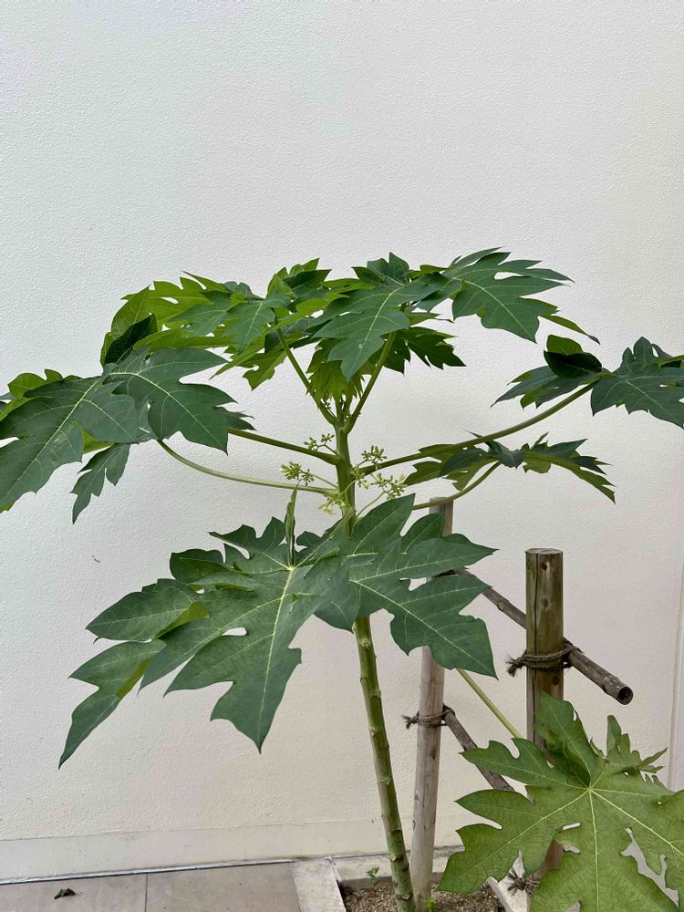 さん、葉っぱ見てパパイヤかと思いました。こんな花が咲くんですね🤍