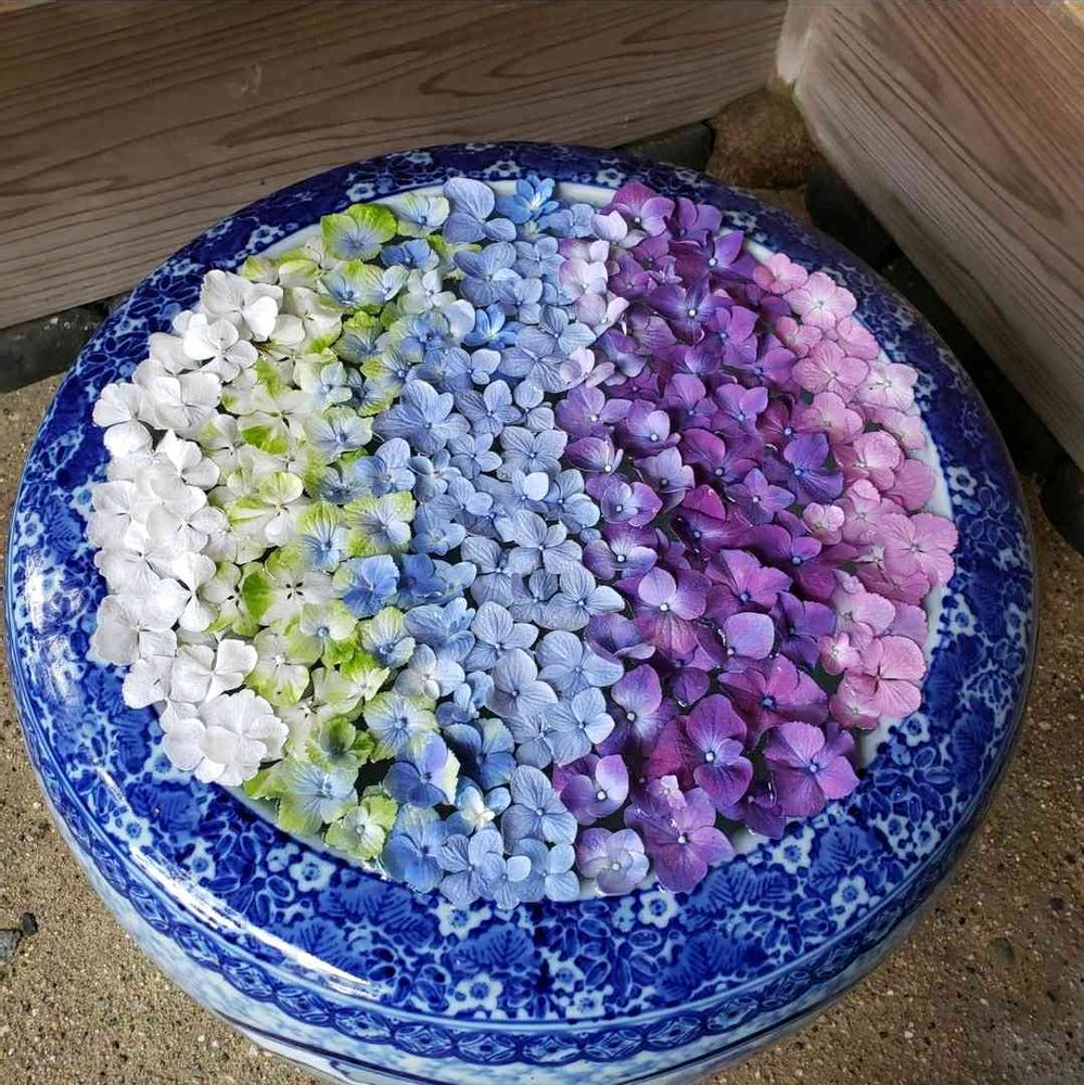 これを見た後実際にグラデーションしてみたらまっすぐな線を出すのが難しくて、花もたくさんいるし、種類も必要だし、この花手水が計算されて作られていたことを実感したのでした!🤭
