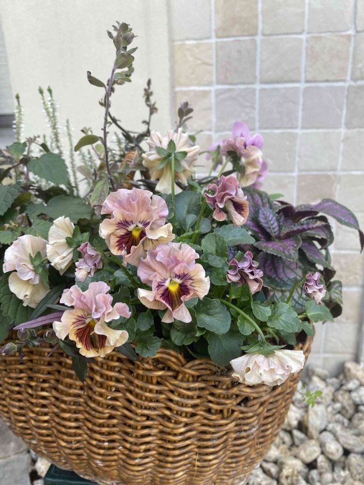 最近、傷みにくい籠をいくつか見つけましたので、カゴへの寄せ植えに挑戦しています。