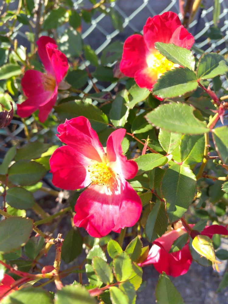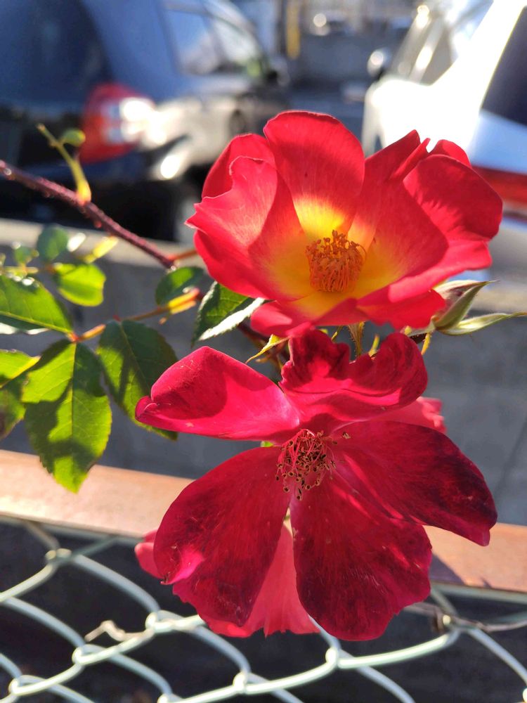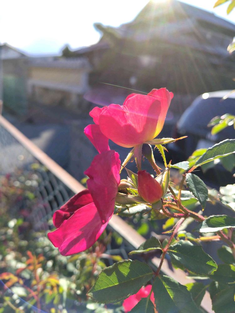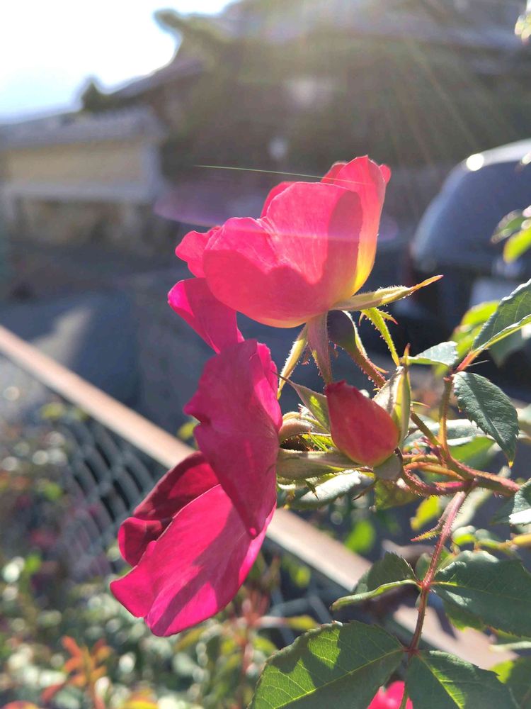 日差し浴びて✨✨赤い…一重のバラ💓💗🥀💓💗💖🌿がキレイでした…