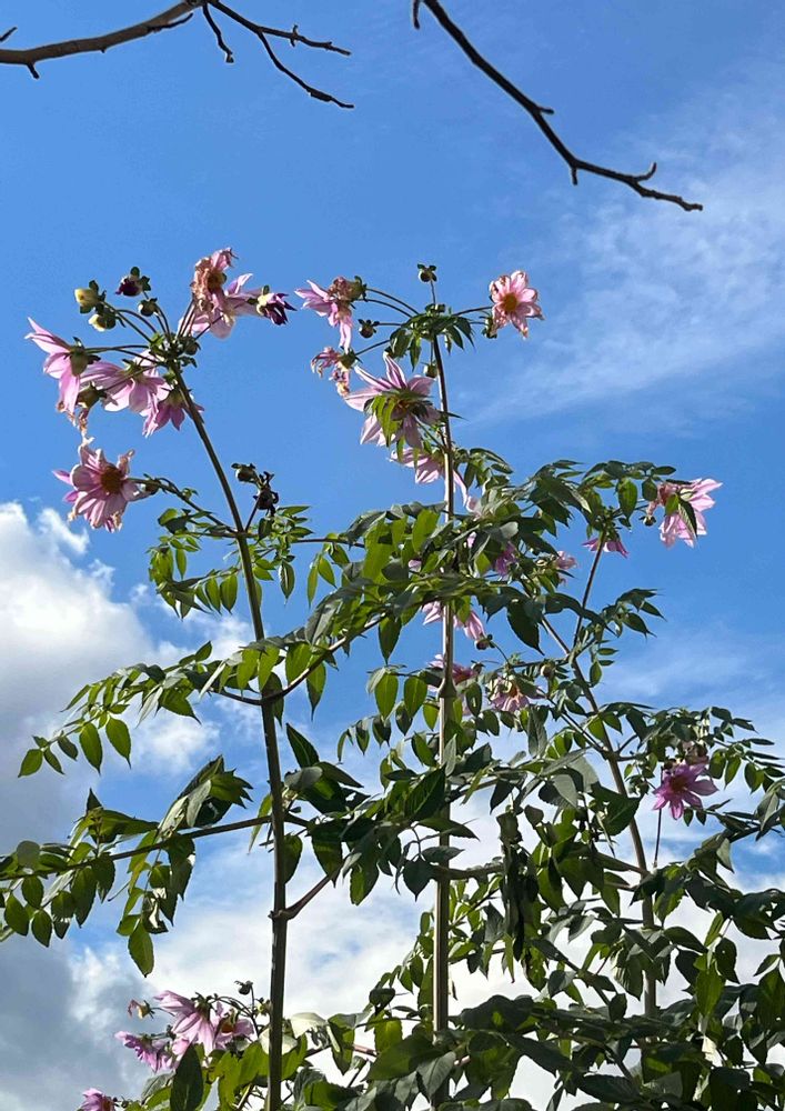 4・5枚目 強風🌪️にも負けずに耐え抜いた皇帝ダリアの花と蕾今度は、寒さに負けそうです。😊🤗💕💖