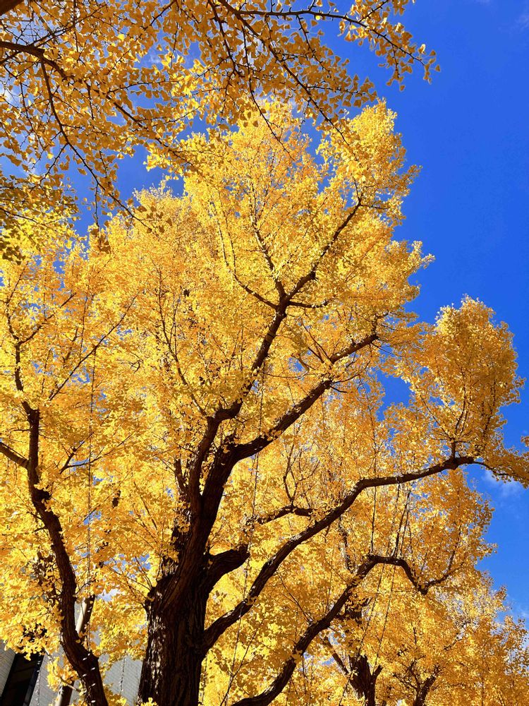 もるもさんキラキラ綺麗だあな〜って上ばっかり見て歩いているとふわっふわのイチョウの葉っぱで滑っちゃうよ🤣