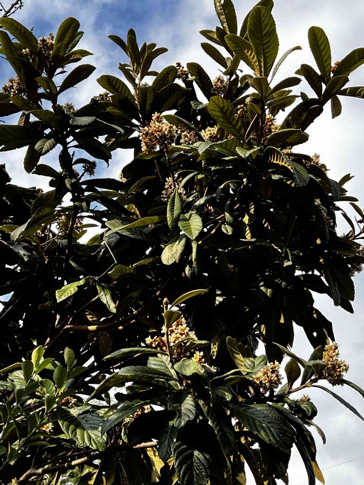ビワって、この時期に咲くんでしたね。考えてみると、食べ頃までずいぶん待つんですね。