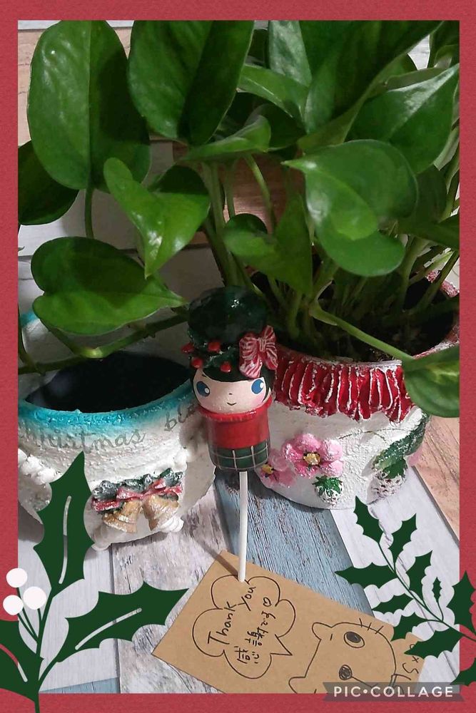 2枚目は、昨日届いたigaberryさんのコルク人形と、リメ鉢。