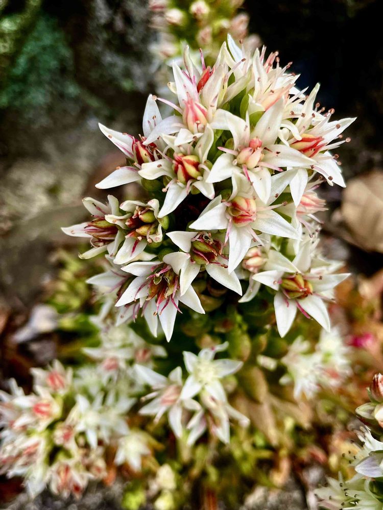 ツメレンゲ多肉ちゃんの花〜すごく暴れん坊🤭✨💚💚💚💚💚で、タワーになってるのも、白い花も可愛いね〜🤍🤍🤍🤍🤍✨✨✨✨