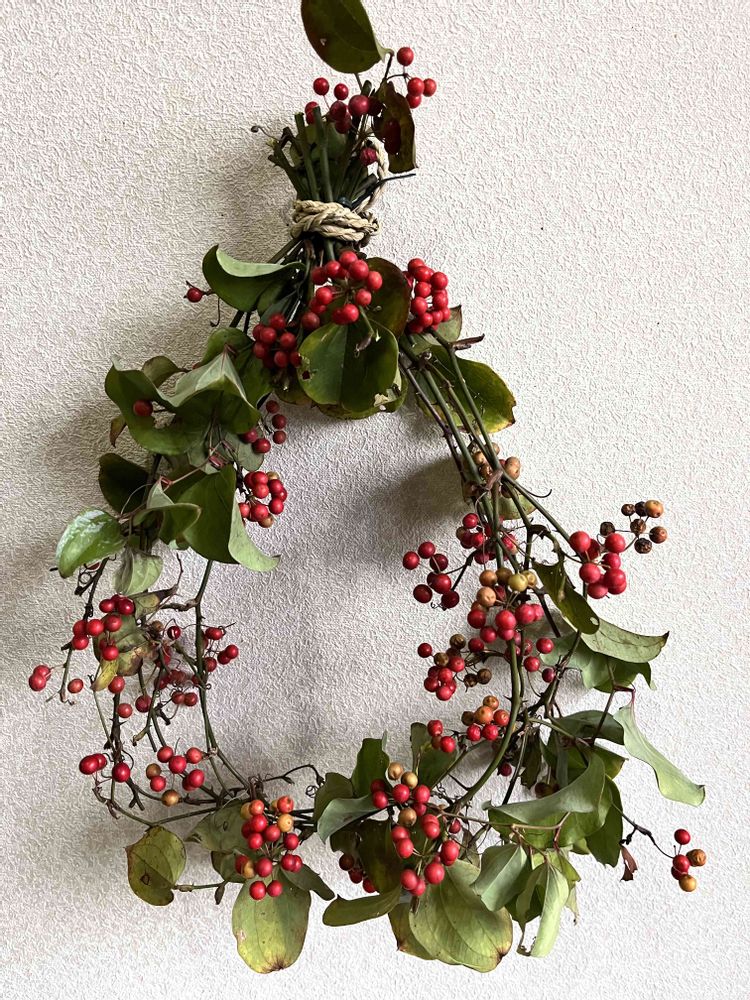 サルトリイバラの、赤い実の個性を活かしたリース素敵です😆🎵🎵