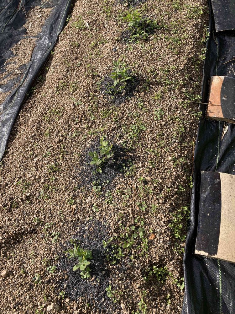 色々丁寧にお世話されていることが分かる綺麗な畑に嬉しい発芽🌱、来年の収穫が楽しみですね♫
