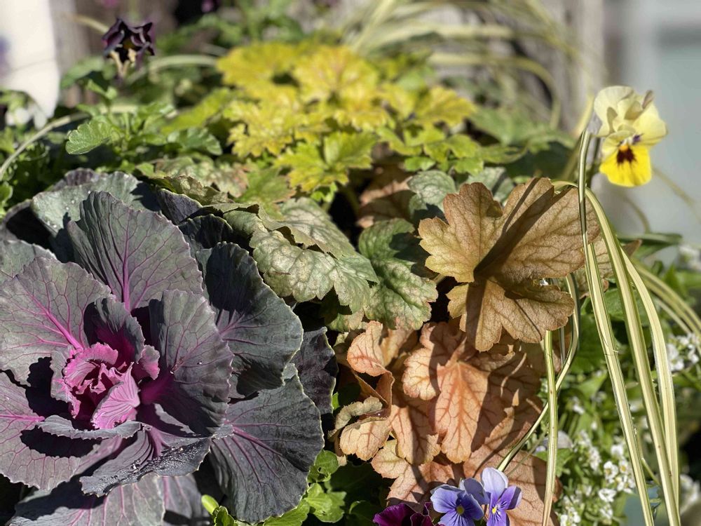 (ハボタン 、ビオラ3種、ヒューケラ2種、アリッサム、ベアグラス)
