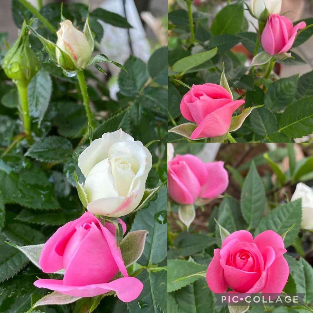 綺麗なピンク色🩷と優しい白色のミニバラ 素敵だね〜♡