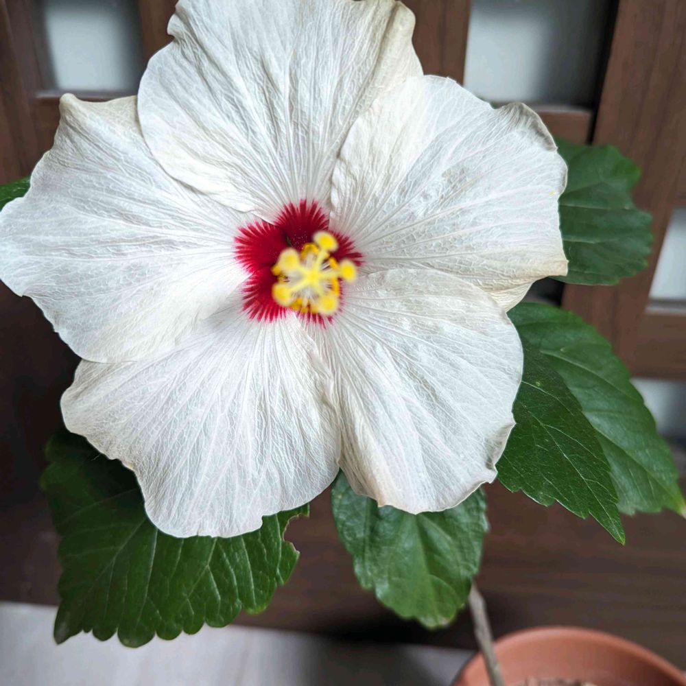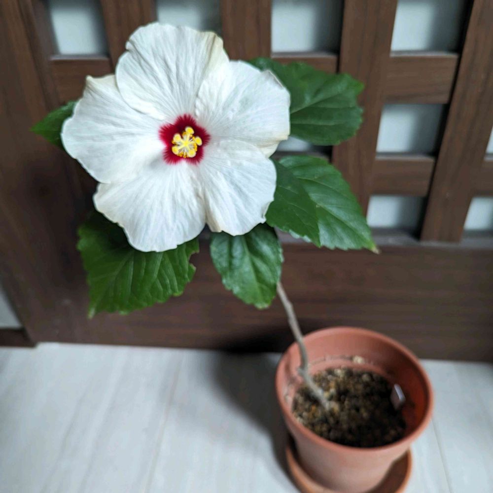 もらい物のハイビスカスだから、私の好みとは違うけど、開花してくれたら何故か嬉しい❤(ӦvӦ。)